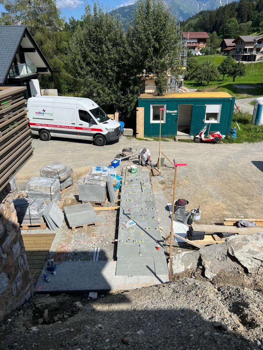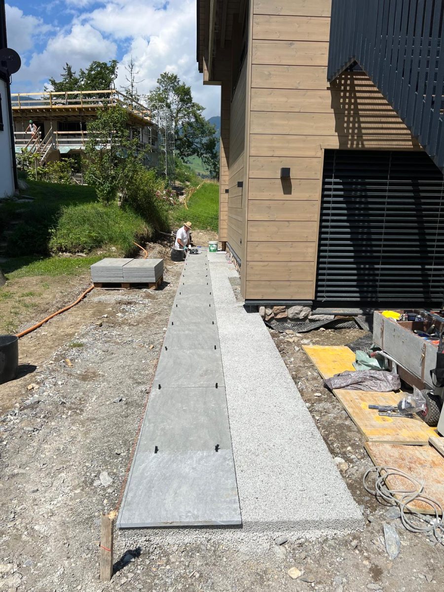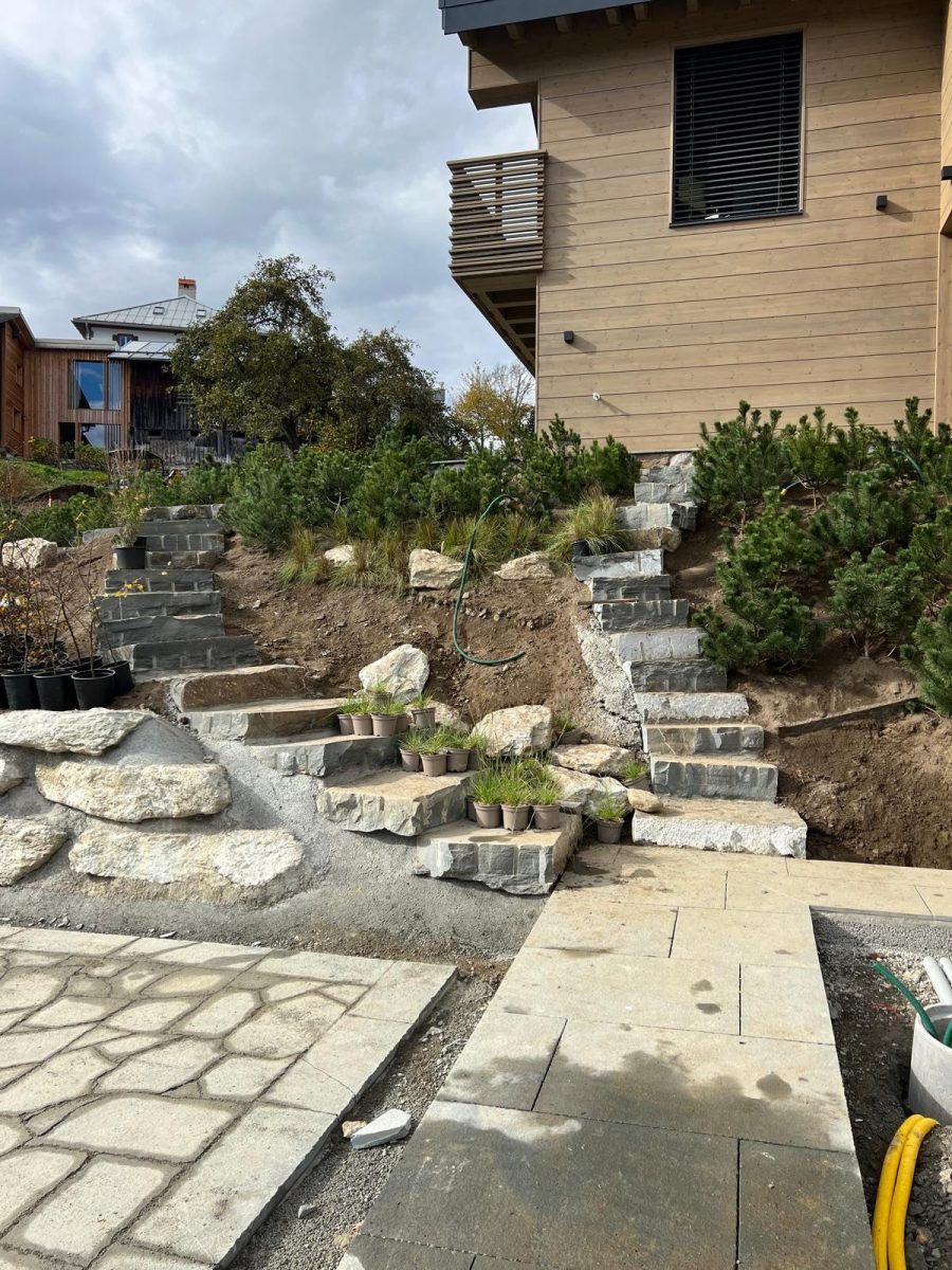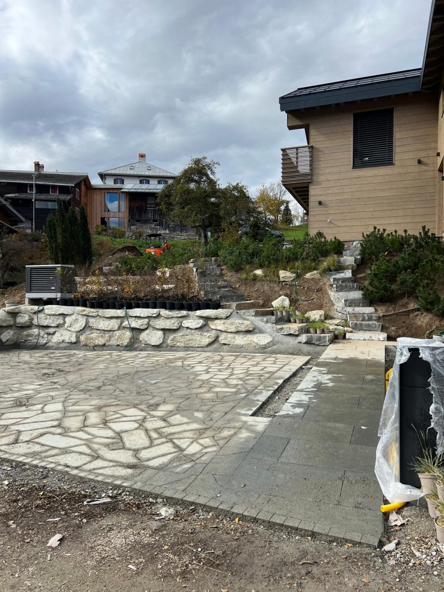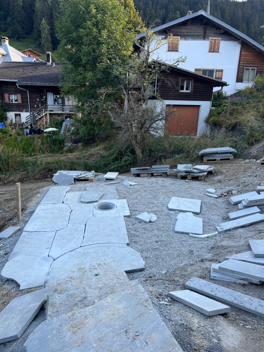 Lavorare a Flond ci ha permesso di confrontarci con un paesaggio dove la natura è protagonista. Il nostro obiettivo era ambizioso: realizzare soluzioni per esterni in pietra naturale che fossero non solo funzionali e resistenti alle intemperie, ma anche armoniosamente integrate nel contesto architettonico svizzero.